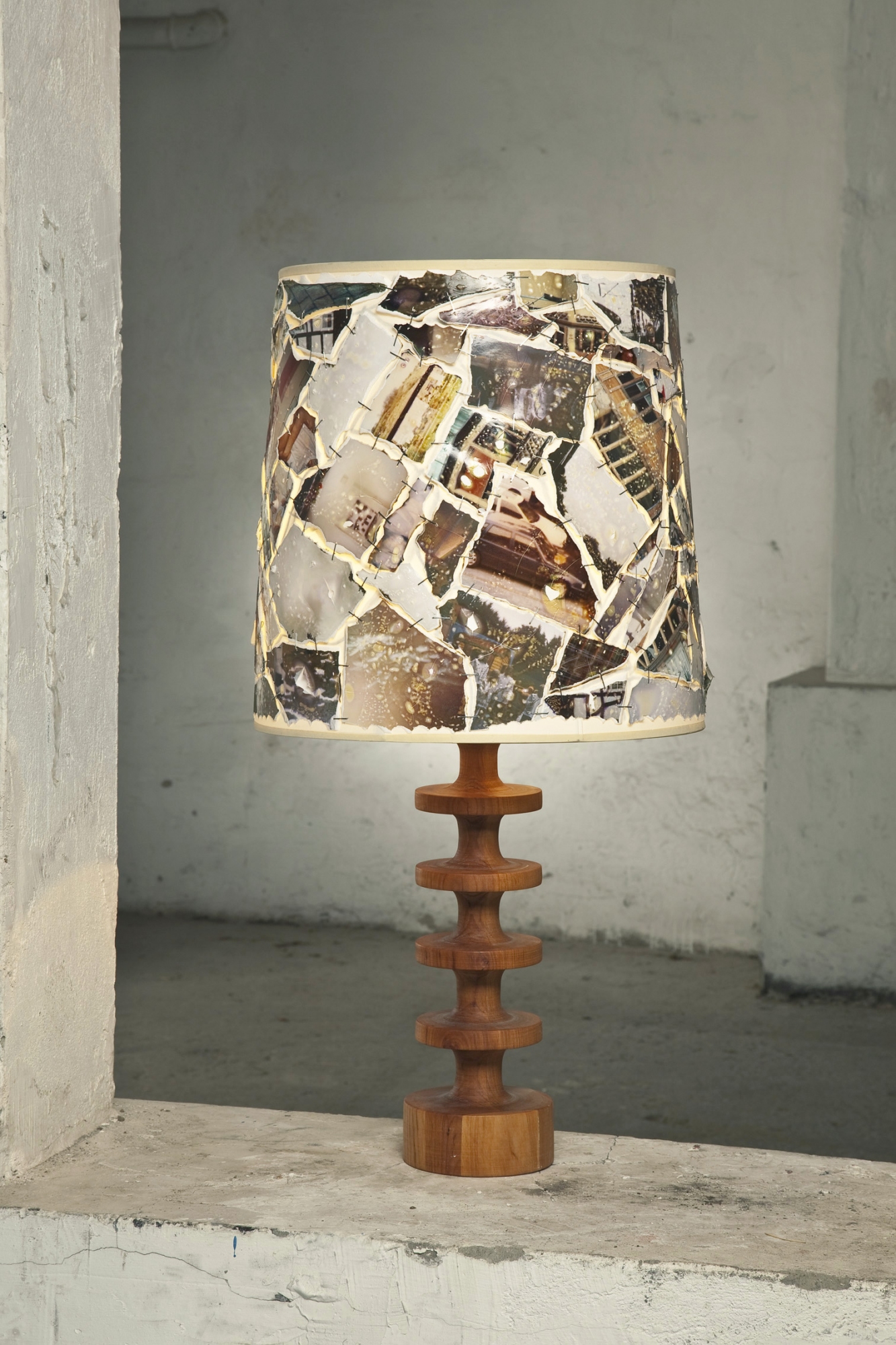 Aus Alt wird Neu: Man nehme alte Fotos, zerrupfe sie, sortiere sie nach Farben und Formen und tackere sie zu einem Mosaik neu zusammen. Nach einer gewissen Sonderbehandlung zur Verfremdung seiner Oberfläche wird es wie eine Haube auf dem Schirm befestigt. Klingt ganz leicht, war aber doch ganz schön kniffelig.