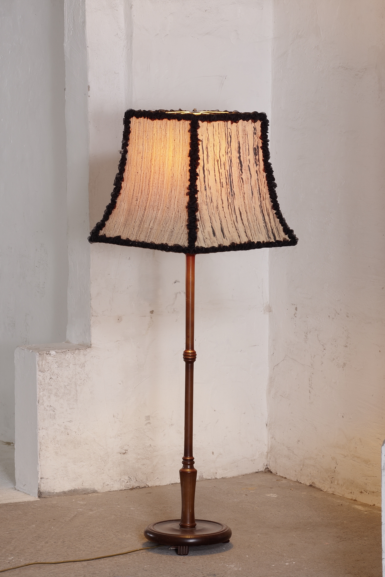 Material: Drahtgestell, Hartfolie, Seide,Tusche, Organza
