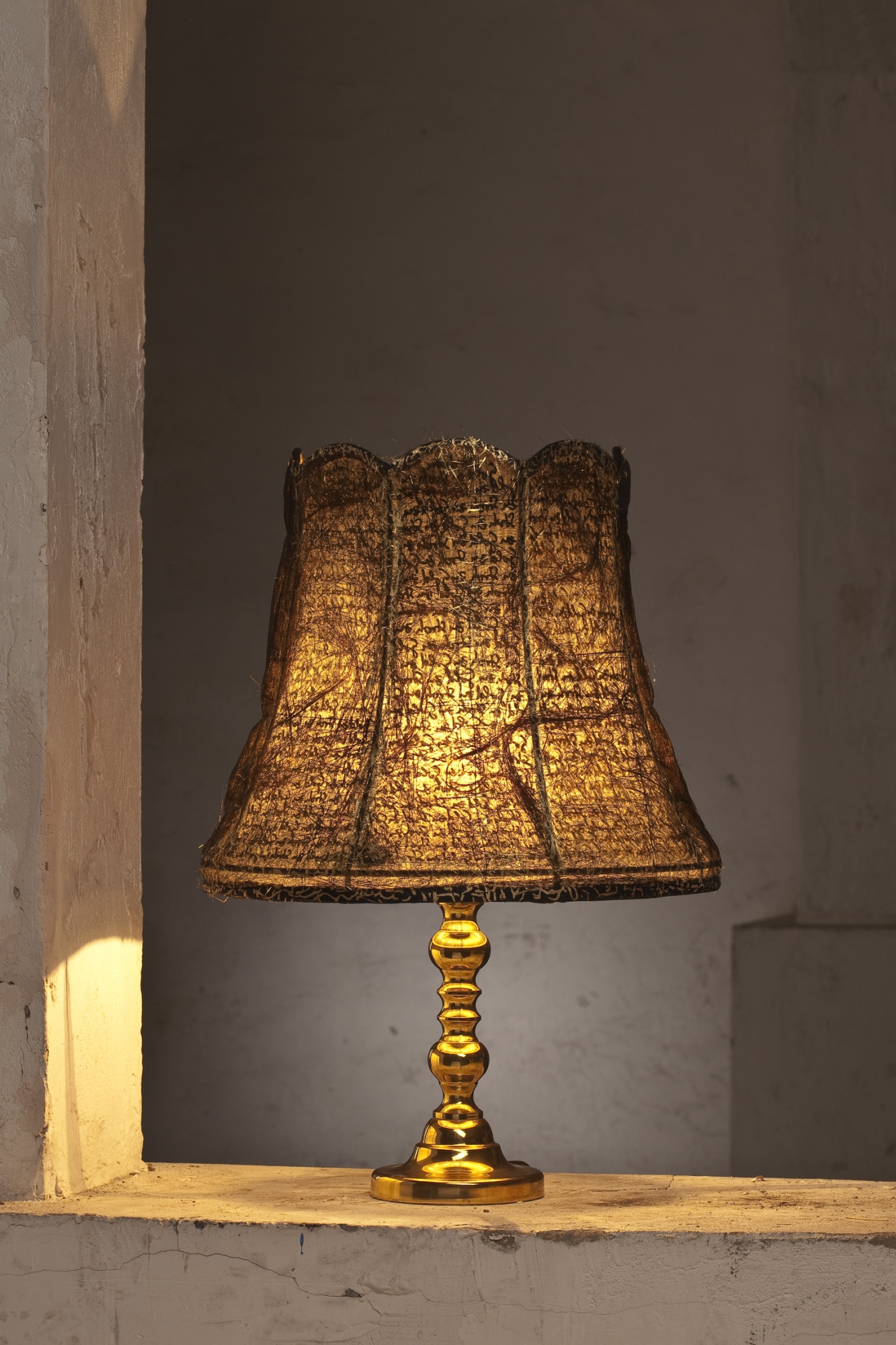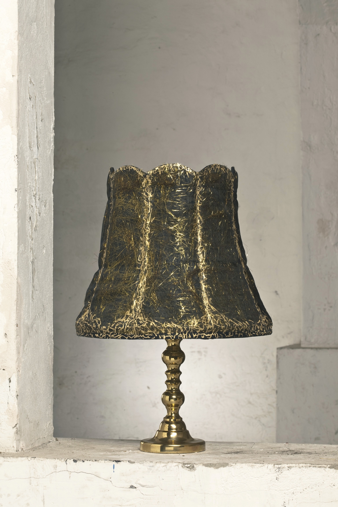 - frei nach dem gleichnamigen Märchen: während der langen dunklen Nacht, in der die Prinzessin mit dem Strohspinnen beschäftigt ist, wird ihr Gefängnis durch diese Leuchte ein wenig erhellt, so dass sie im (Gegen-) Licht der Lampe auf dem Schirm erkennen kann, wieviel Stroh noch zu bewältigen ist. Wenn der Morgen graut und die Leuchte ausgeschaltet wird, verwandelt sich das Stroh der Dunkelheit - wie auf dem Lampenschim sichtbar - plötzlich in lauter Goldfasern.